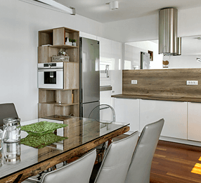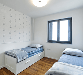 Apartament AQUA oferuje zakwaterowanie dla maksymalnie 6 osób. Komfortowa, duża przestrzeń o pow.115 m2 składa się z 3 sypialni, 2 łazienek, salonu ,kuchni z jadalnią oraz pralni.